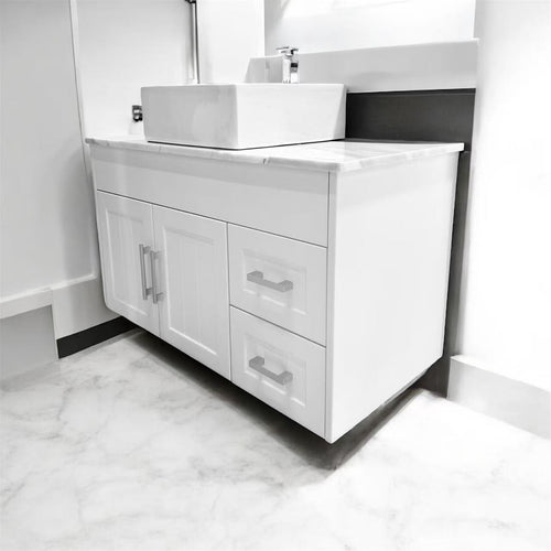 Wall Hung Bathroom Vanity - White Matt 1000mm Marble Stone Counter Top