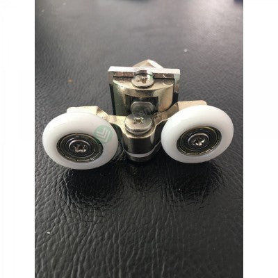 Chromeplated Top/Upper Double Shower Roller Unit.The truck is held in place with a nut and this is covered with a chromed plastic cover making them pleasing to the eye and easy to clean.They are adjustable up and down to allow the door to be lined up to mate with the frame or magnetic seal where you have a pair of doors.