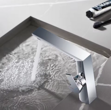 Expertly crafted from durable brass, this Black Chrome Basin Faucet features a single handle for easy temperature and water flow control. Enjoy the benefits of both cold and hot water with this sleek and modern bathroom mixer. Upgrade your space with this functional and stylish addition.