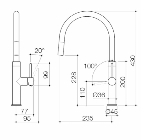 - Water efficient WELS 5 star flow rate (6L/min), with optional WELS 6 Star (4.5L/min) aerator supplied