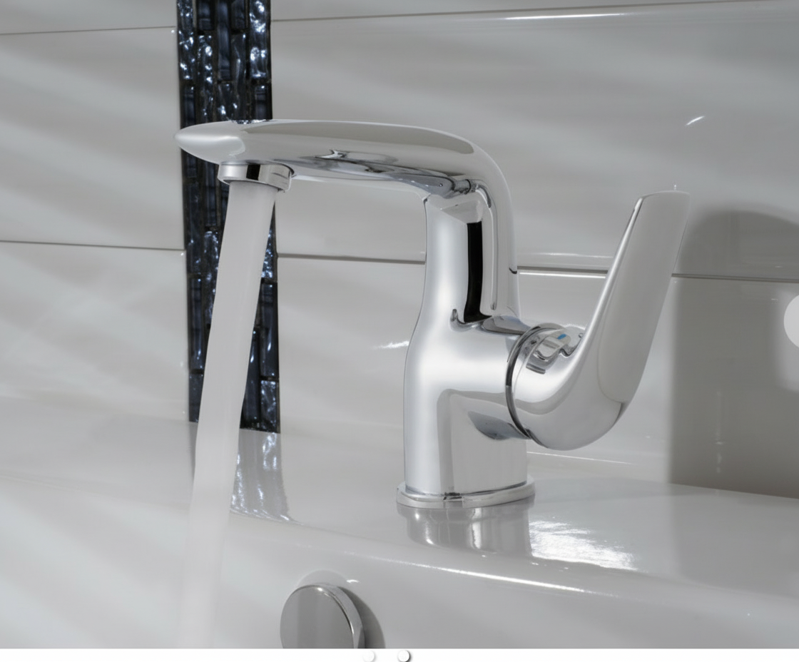 A cute and stylish fixed-spout chrome basin mixer suitable for mains and low pressure. Comes fitted with a flow guide to maximise flow on low pressure. But also supplied with a 7 litre per minute pressure compensating aerator for regulated flow if it's to be installed on mains pressure.