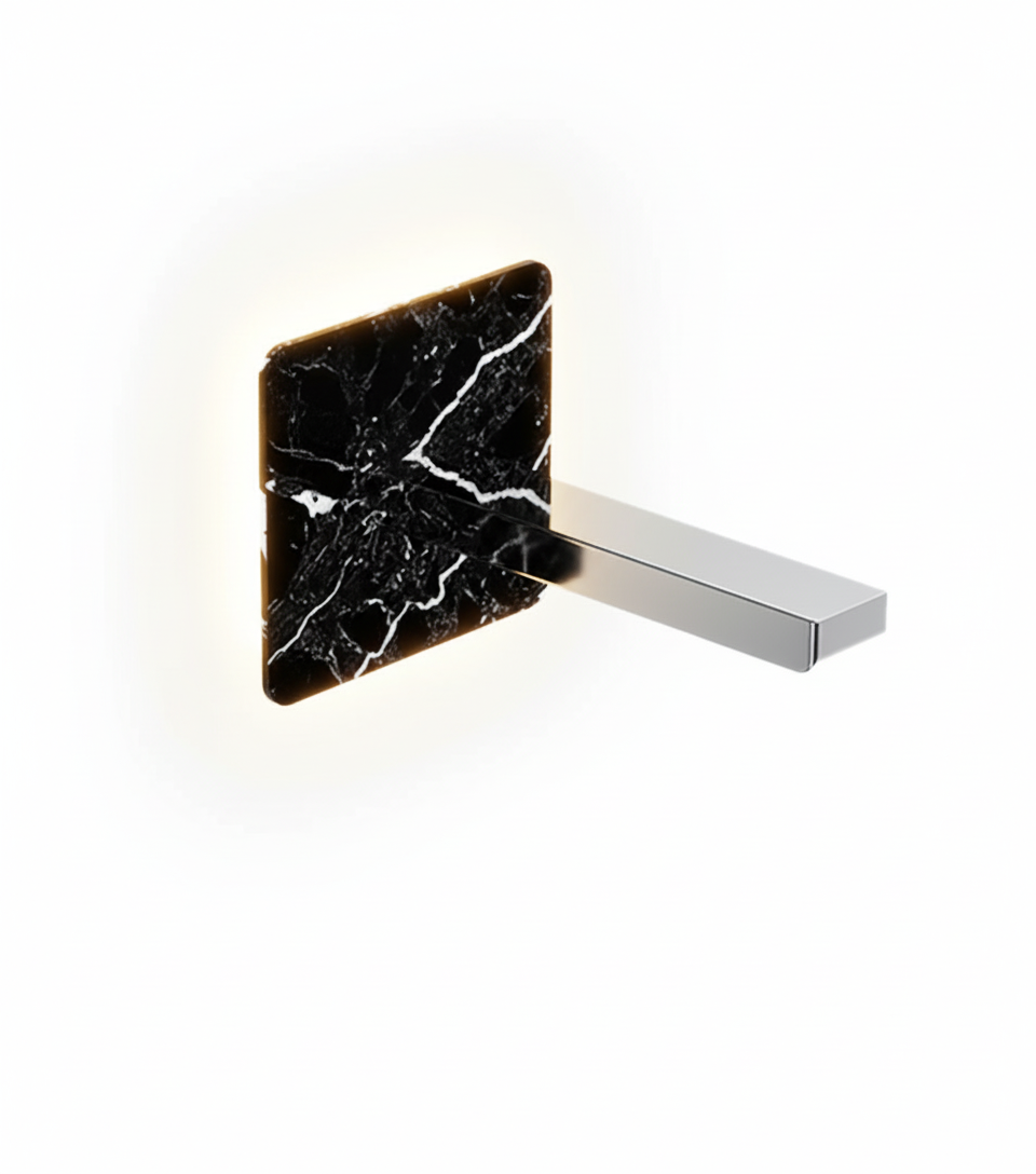 Elements Bath spout in chrome with a black marble design on the backplate. 195mm long. 1/2" BSP female inlet.