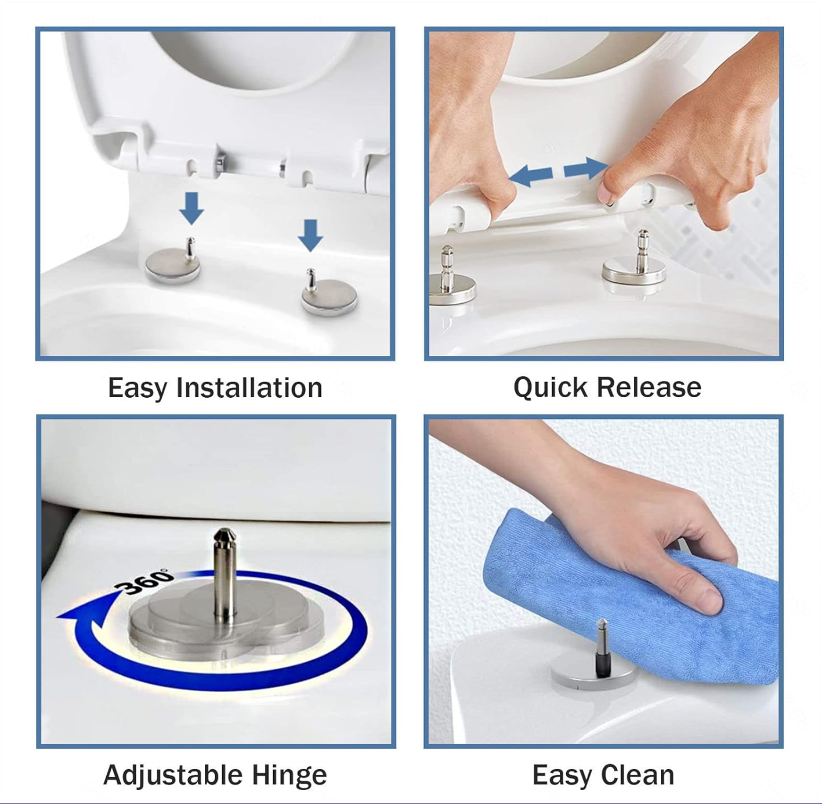 Features one-push button quick-release hinges, enabling fast fitting and easy removal of seat for cleaning