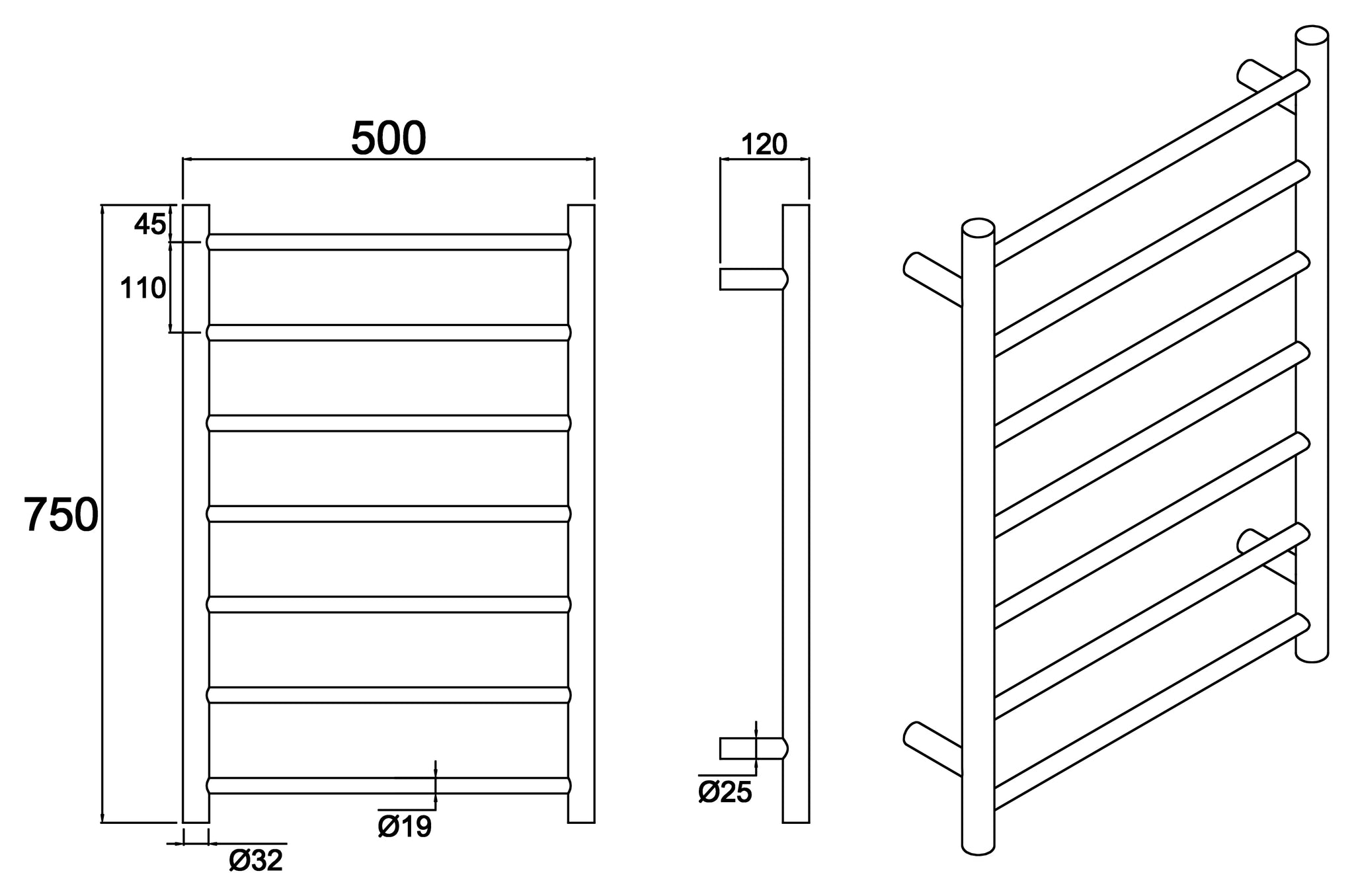 Main Product | 1x 7 bars heated towel rail |