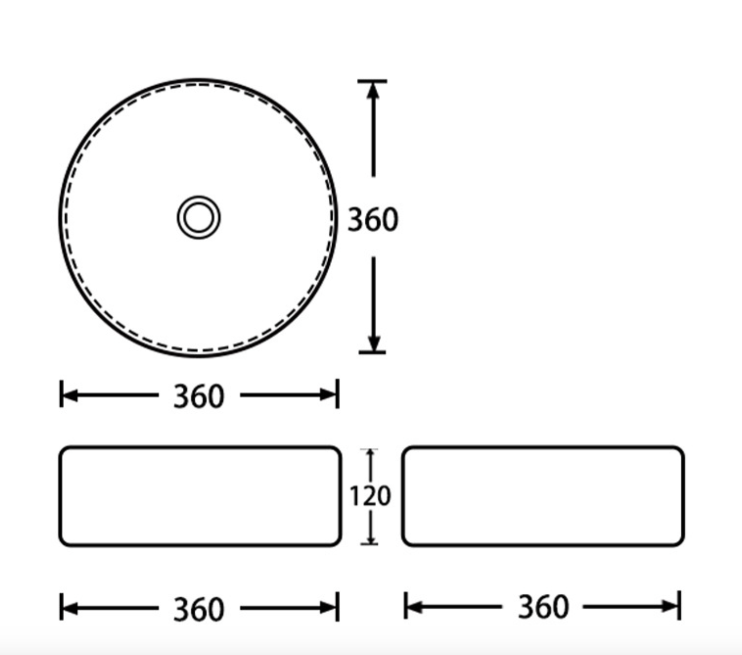 * 360mm Wide, 150mm High, 360mm depth (front to back)