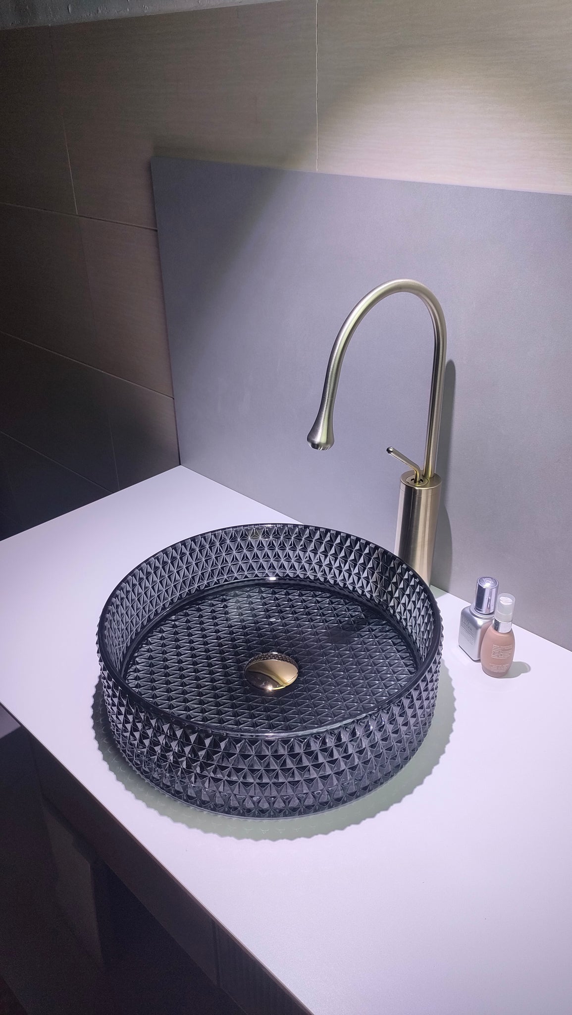 Modern Crystal Basin Wash Glass Sink - Black Glass