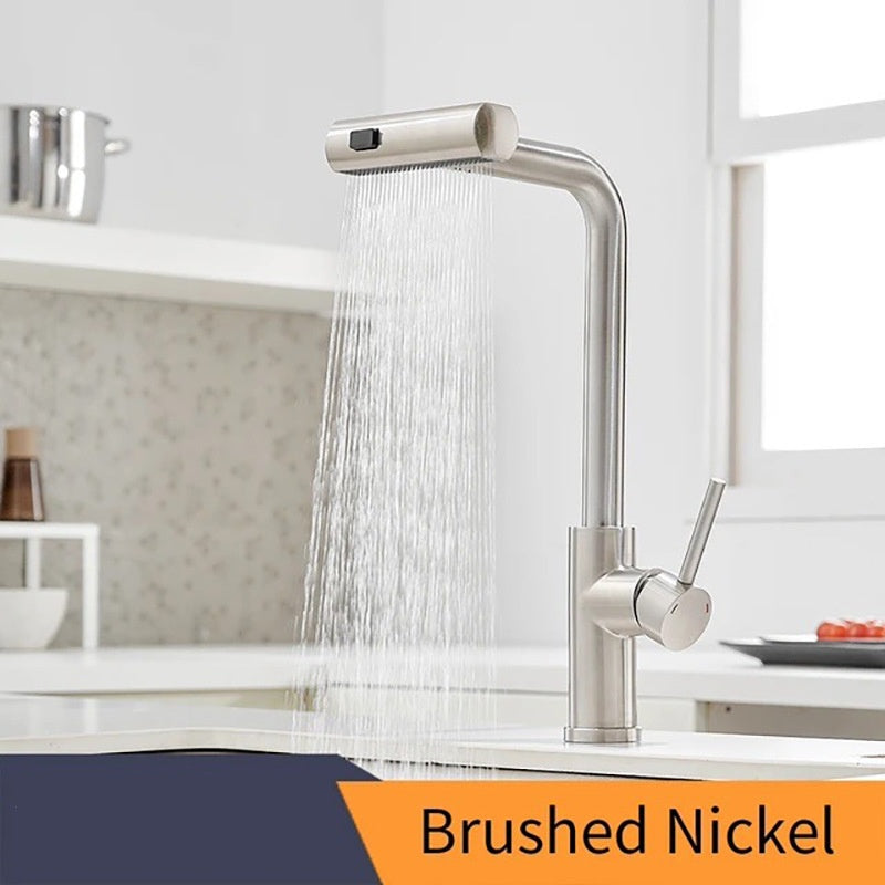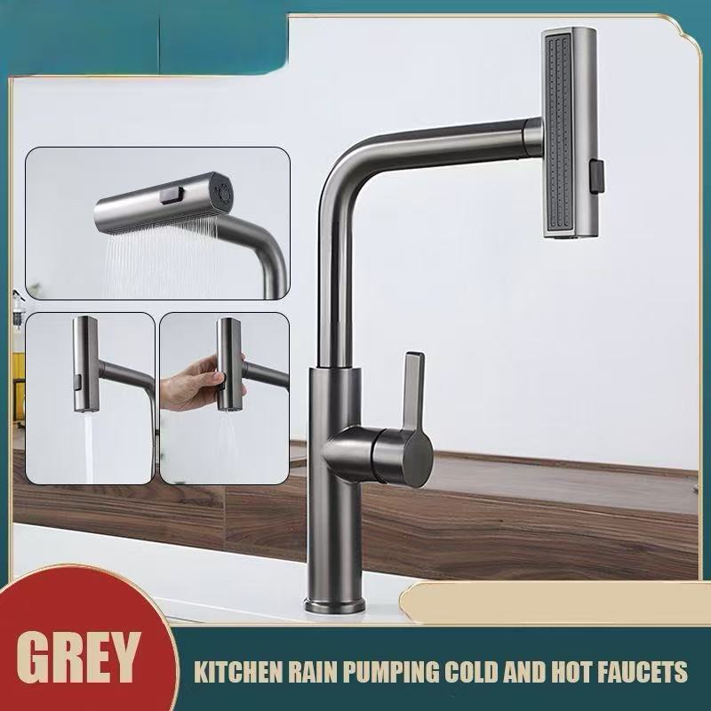 Durable 304 Stainless Steel construction Polished chrome finish 1 lever handle Drip Free Ceramic disc cartridge for smooth and long lasting operation Easy to install With swivel spout fit for two sinks Complete with hot&cold water hoses&accessories