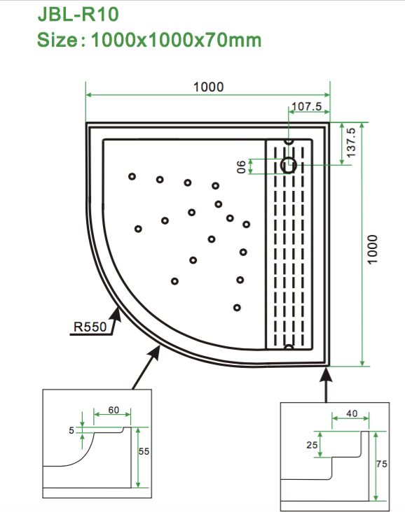 At just 50mm high with 20mm upstand edges, 1000x1000mm ABS resin shower tray is designed to be fitted as a normal shower tray ,Providing a superb wet room alternative but without all the associated costs and fitting challenges.The shower tray includes a high flow waste and a rectangular stainless steel grate.