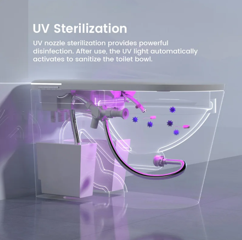 • 360-Degree Rotational Flushing: Equipped with an automatic humidification function that wets the inner walls of the bowl to prevent stains and ensure thorough cleaning.