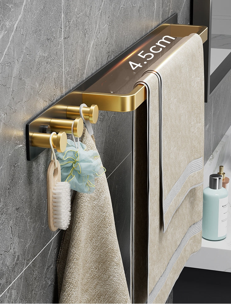 This Towel Rack with Hook Perforation Three Rod Storage Rack offers convenience and organization to your bathroom. Its innovative design allows for easy towel storage with three rods and a hook for additional items. Keep your towels and bathroom essentials neatly stored and within reach.