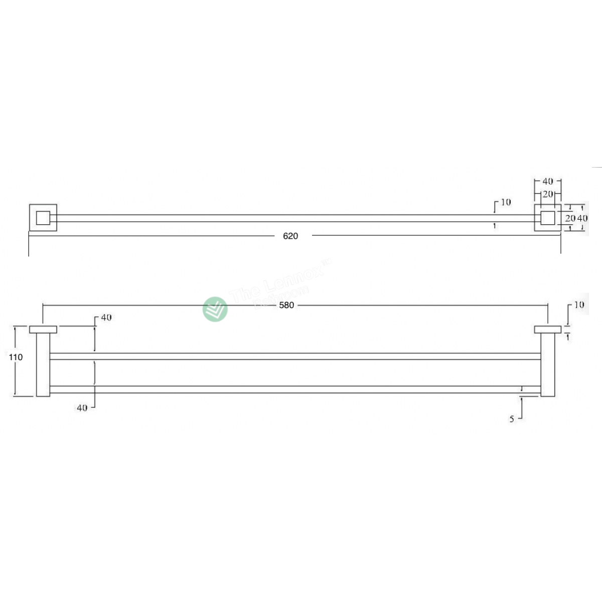 Double your storage space with double towel rail. Two 24-inch rails keep your towels off the floor. Its modern design featuring a dove tailed detail making it compatible with most contemporary bathrooms. Square Series with its sleek style, to complete your bathroom accessory set.