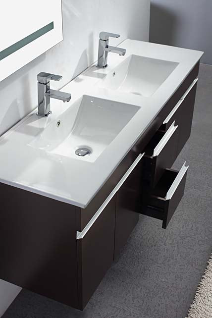Change the look of your bathroom with this new bathroom full wall hung vanity cabinet complete with basin and comes 95% assembled. Features beautiful craftmanship, solid strong structure, ceramic china top and bowl, MDF cabinet, Quality double soft closer tracks draws and Pre-drilled for single tap hole