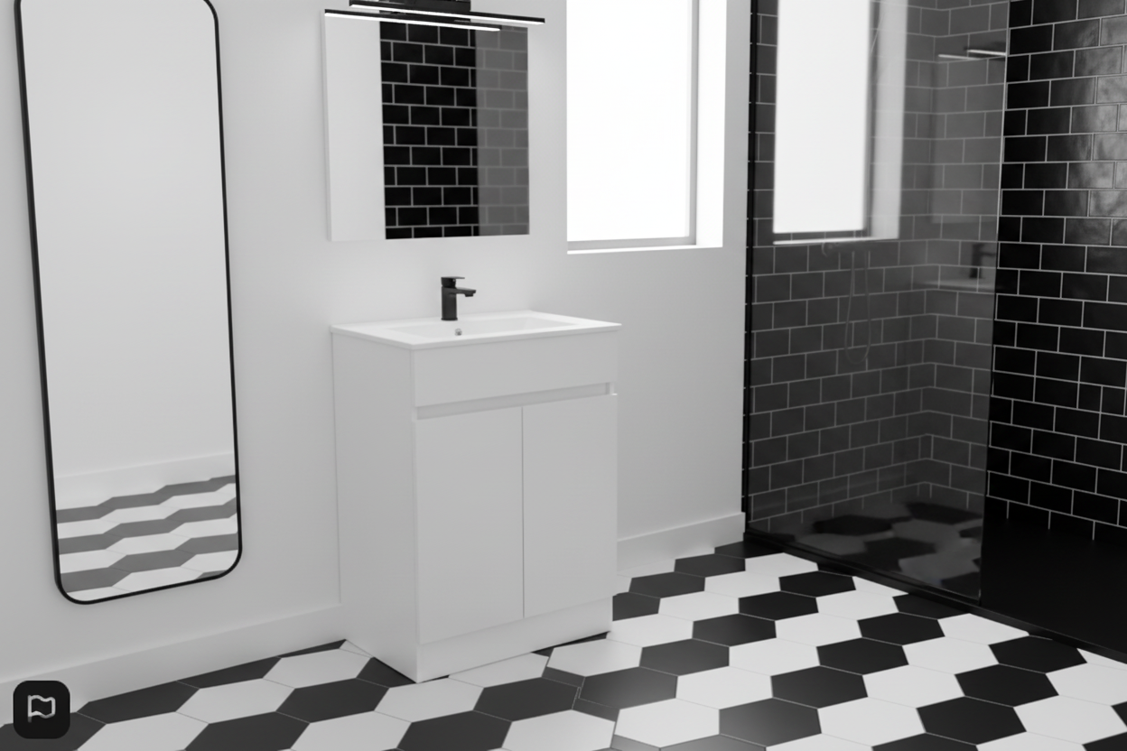 White colour bathroom Vanity Cabinet + Square Basin 900mm
