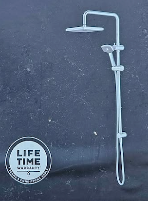- Enjoy an overhead shower and hand shower in one beautifully designed shower system